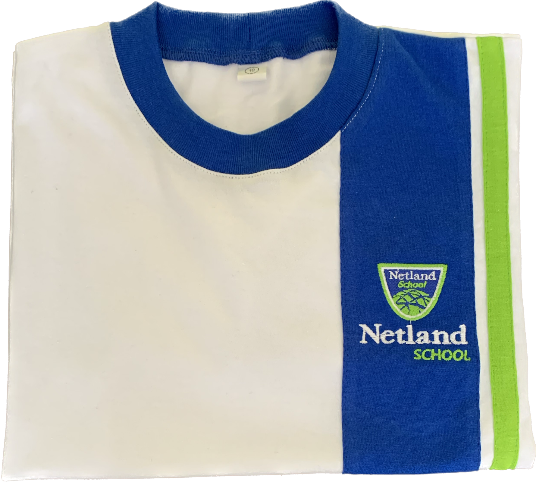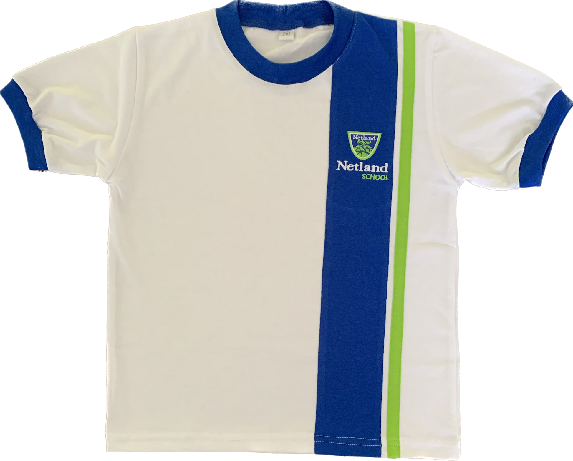¡Echa un vistazo a la polera blanca del Netland School! Esta prenda de vestir de alta calidad está hecha de suave algodón y cuenta con un elegante cuello azul y una insignia bordada del Netland School. La polera tiene un corte clásico y un ajuste cómodo, por lo que es perfecta para llevar al colegio.