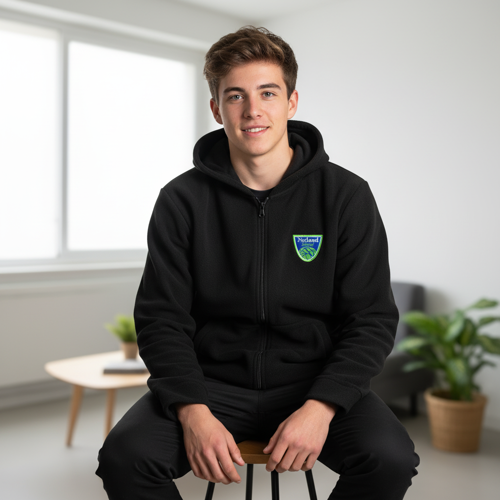 ¡Este polerón negro con cierre e insignia bordada del Netland School de Antofagasta es una edición especial solo para los alumnos de enseñanza media y es una opción cómoda y estilizada para el frío! Hecho en Chile por la empresa familiar Confecciones Cheli, este polerón está hecho de suave y duradero material y cuenta con una elegante insignia bordada del Netland School.