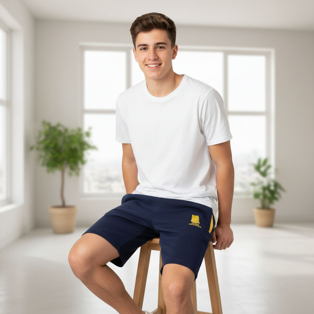 ¡Este short de algodón azul con insignia bordada del Colegio Antofagasta es una opción cómoda y estilizada para el calor! Hecho de suave y duradero algodón, este short es ideal para llevar al colegio o para cualquier ocasión casual.